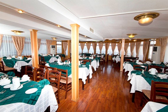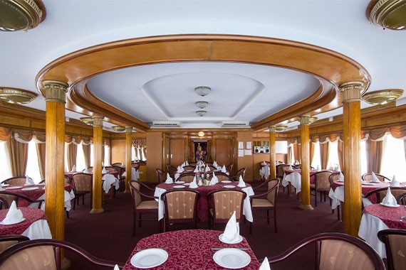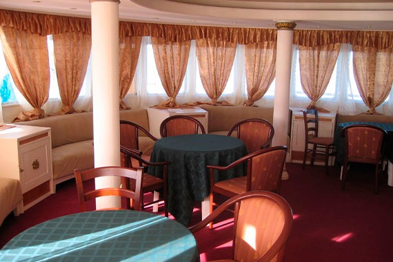 Гости судна могут посещать ресторан «Кама» или «Волга». Они предлагают разнообразные кулинарные впечатления в уникальной атмосфере плавания. От изысканных буфетов с международной кухней до ресторанов с авторскими блюдами от талантливых шеф-поваров, каждое заведение предлагает свой неповторимый вкусовой опыт. Гости могут насладиться блюдами из свежих морепродуктов, традиционными деликатесами или даже эксклюзивными гастрономическими экспериментами, которые готовит сам шеф-повар.