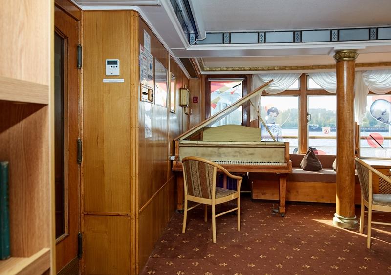 На теплоходе к вашим услугам: музыкальный салон, кинозал, медпункт, гладильная комната, детская комната. Организуются музыкальные и развлекательные программы, есть телевизоры в баре и салоне, библиотека, открытые бортовые веранды, прокат спортинвентаря, спортивные тренажеры, проводится утренняя разминка на воздухе.