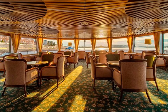 Насладитесь широким выбором напитков, от классических коктейлей до авторских миксов. Это идеальное место для отдыха, общения с друзьями или простого наслаждения великолепными видами реки и атмосферой теплохода.