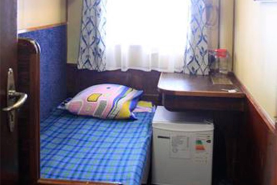 Одноместная каюта со всеми удобствами, расположенная на главной палубе. Площадь каюты от 5 до 6 м . Мини-бар пополняется за дополнительную плату. В каюте: односпальная кровать, шкаф для одежды, столик, холодильник, мини-бар, кондиционер, радиоточка, зеркало, ванная комната (раковина, душ, туалет), обзорное окно.