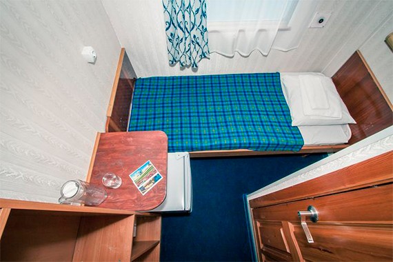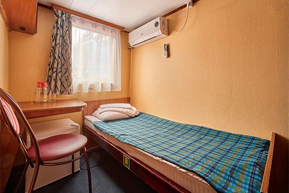 Одноместная каюта со всеми удобствами, расположенная на средней палубе. Площадь каюты от 5 до 6 м². Мини-бар пополняется за дополнительную плату. В каюте: односпальная кровать, шкаф для одежды, ванная комната (раковина, душ, туалет), столик, холодильник, мини-бар, кондиционер, радиоточка, зеркало, обзорное окно.