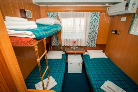 Двухместная двухъярусная каюта с частичными удобствами, расположенная на главной палубе. Душ и туалет на палубе. В каюте: двухъярусная кровать, полка с плечиками для одежды, раковина с холодной и горячей водой, стол и стул, радио, розетка, обзорное окно.