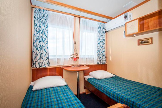 Двухместная двухъярусная каюта, расположенная на средней палубе. Площадь каюты ≈ 5,1 м². Душ и туалет на палубе. В каюте: двухъярусная кровать, раковина с холодной и горячей водой, шкаф для одежды, настенная полка, стол и стул, зеркало, радио, розетка, обзорное окно.