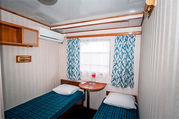 Двухместная двухъярусная каюта, расположенная на нижней палубе. Площадь каюты ≈ 5,5 м². В каюте: двухъярусная кровать, столик, крючки для одежды, радио, розетка, иллюминатор.