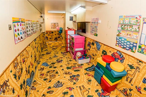 На теплоходе действует специальное предложение «Дети бесплатно». Работают квалифицированные аниматоры. Для детей и подростков проводят развлекательные программы, детский час, мастер классы и квесты. Для каждого ребенка до 10 лет отправление в путешествие начинается с подарка. Бесплатно по запросу на борту предлагаются детские кроватки и постельное белье, в ресторане – отдельно разработанное меню, блюда которого подаются в детской посуде, также есть специальные стульчики для малышей от одного до трех лет.