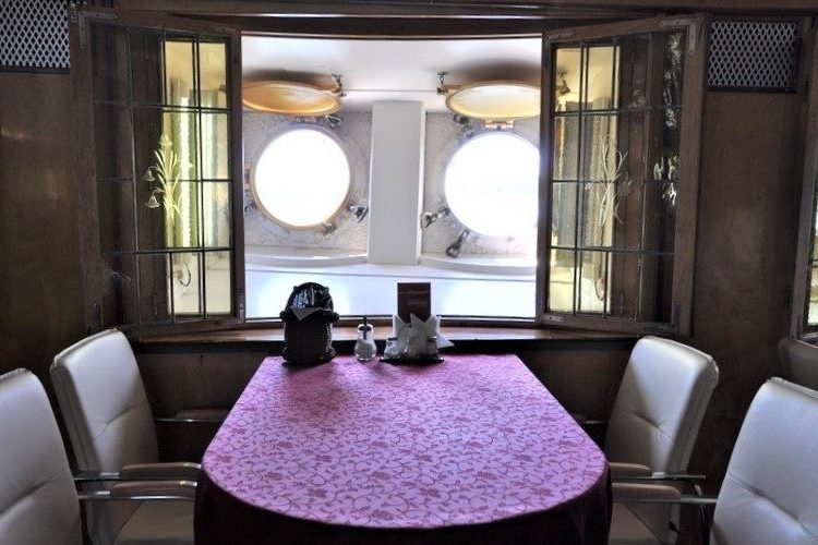 Провести время с близкими и друзьями можно не только на палубе, но и в салонах на средней палубе: в читальном и музыкальном. Развлекательная программа на борту не предусмотрена.