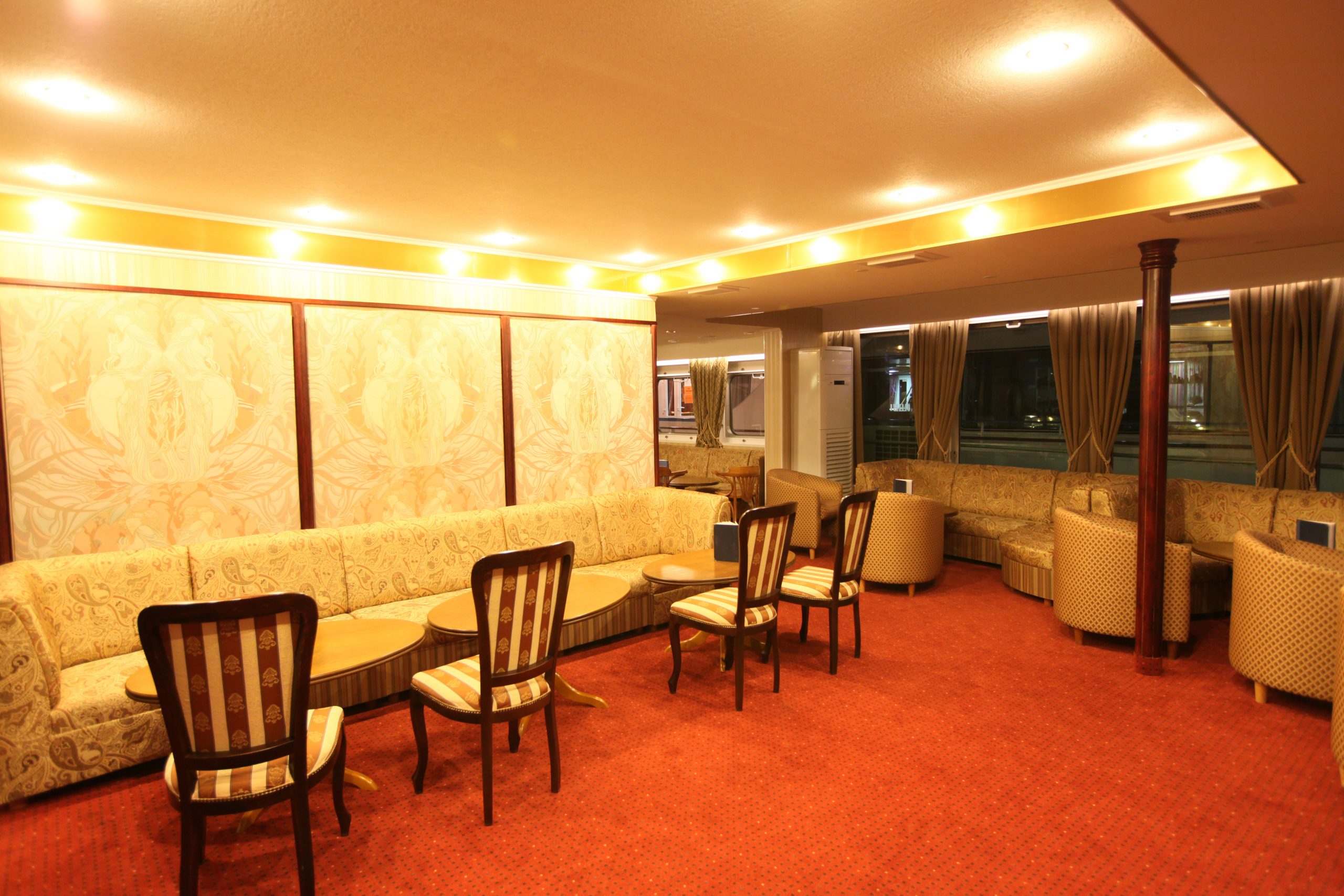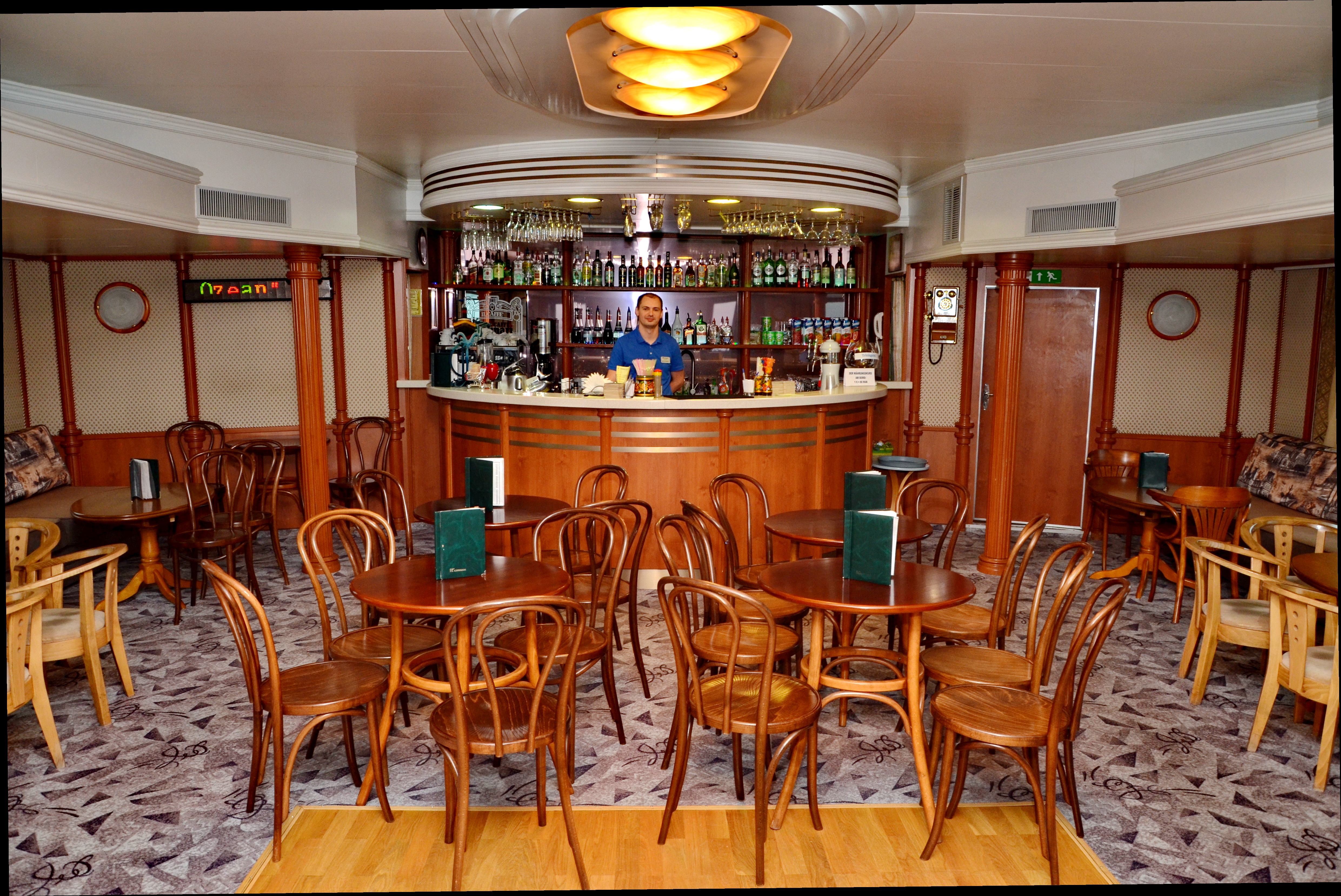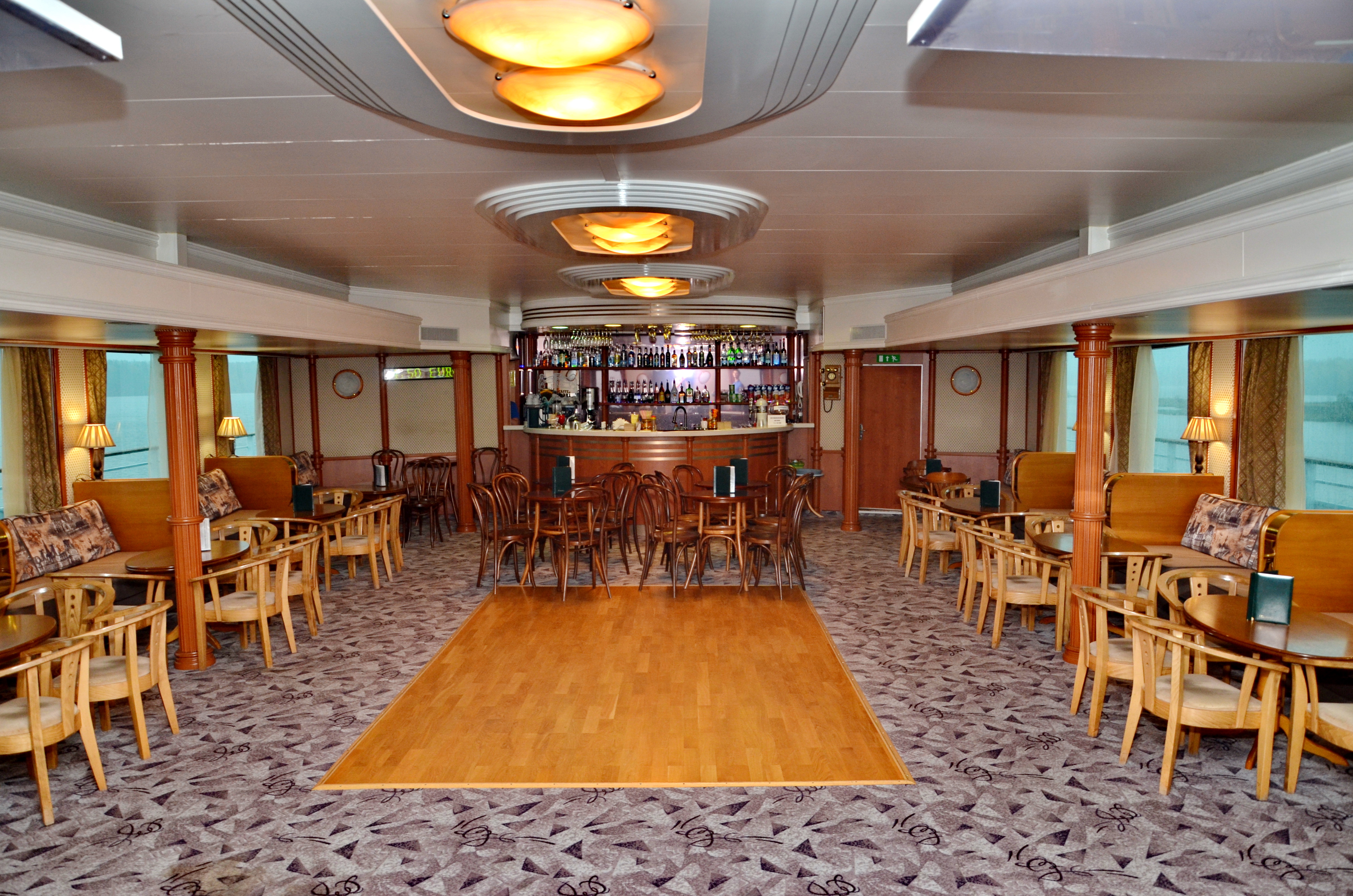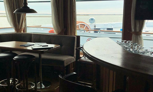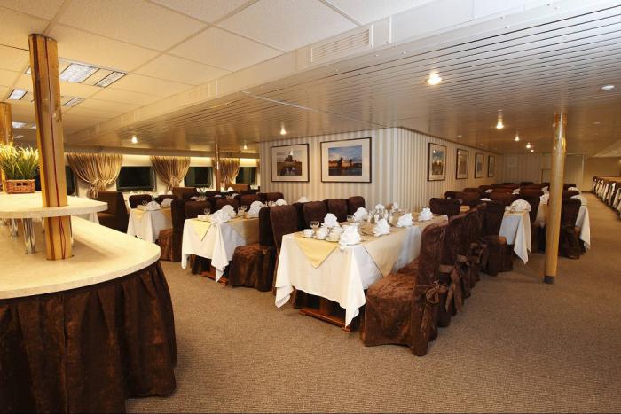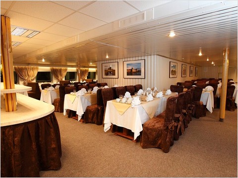 Ресторан и кормовой бар на солнечной палубе предлагают уютную атмосферу, разнообразное меню, качественное обслуживание.