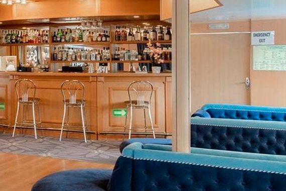 Кофейня расположена в носовой части средней палубы. Из её окон открывается панорамный вид. Уютная атмосфера, профессиональный бариста, ароматный свежесваренный кофе, настоящий пломбир в металлических креманках, десерты от нашего шеф-кондитера. Прекрасное место для неспешной беседы или наблюдения за живописными пейзажами за окном. Возьмите с собой на палубу ароматный кофе в фирменном стаканчике и сделайте селфи на фоне проплывающих пейзажей.